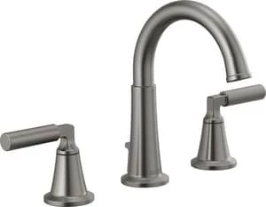 Outlet 👏 Delta Faucet Bowery™ Two Handle Widespread Bathroom Sink Faucet with Metal Pop-Up Drain in Black Stainless ⌛